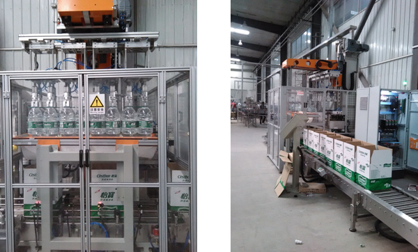 全伺服系統(tǒng),抓瓶及落瓶進(jìn)箱時,行程及定位精準(zhǔn),適用于大瓶及易碎玻璃瓶的自動裝箱。